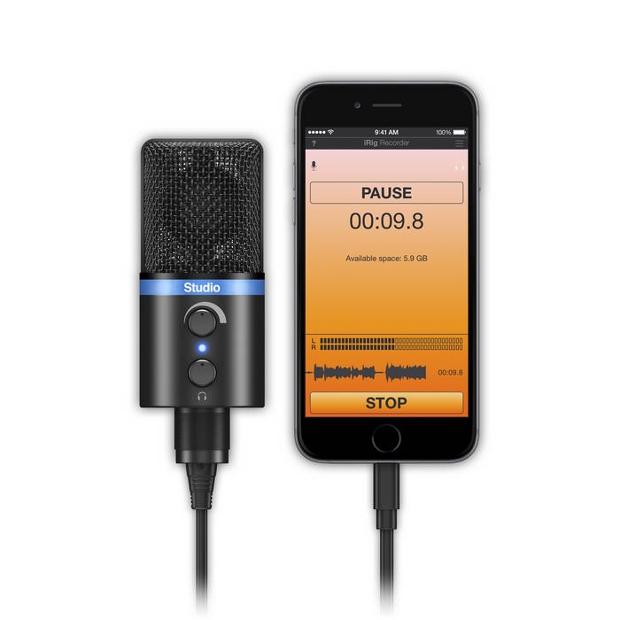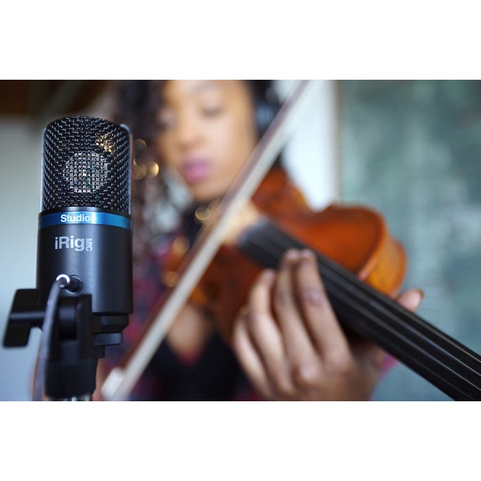 Ultra-portable large-diaphragm digital microphone for iPhone, iPad, iPod touch, Mac, PC and AndroidMake professional studio-quality recordings on the goIntroducing iRig Mic Studio, IK Multimedia’s ultra-portable large-diaphragm digital condenser microphone for iPhone, iPad, iPod touch, Mac, PC and Android. It packs a 1” diameter condenser capsule into an ultra-compact enclosure that can be used to make professional-quality recordings anywhere. Great for musicians, vocalists, home producers, podcasters, broadcasters, voice-over artists and more, it puts the superior power of a large-diaphragm microphone into the palm of your hand.