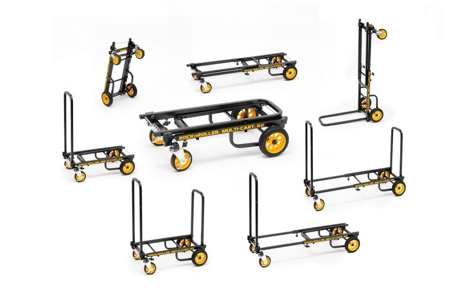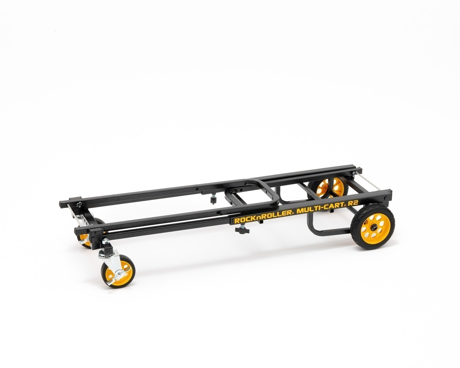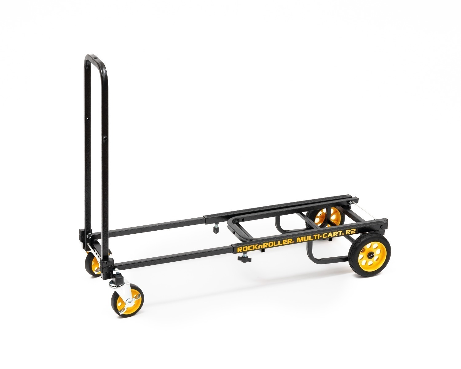 De RocknRoller® Multi-Cart® R2RT is klein maar krachtig. Het telescopische frame kan worden versteld van 66,0 cm tot 99,1 cm en kan tot 158,8 kg gewicht dragen. Hij is klein genoeg om in de bagagebak van een vliegtuig te passen (66,0 cm x 35,6 cm x 16,5 cm). Hij heeft sterke, met schuim gevulde, low-profile “no-flat” achterwielen van 15,2 cm en zwenkwielen van 10,2 cm voor, zodat je grote ladingen snel en gemakkelijk kunt verplaatsen. De R-Trac® banden bieden een soepele rit en uitstekende tractie, vergelijkbaar met traditionele luchtbanden, maar dan zonder onderhoud of reparaties. Het speciale 8-in-1 ontwerp kan eenvoudig worden aangepast aan ladingen van verschillende afmetingen, waardoor het zeer eenvoudig is om apparatuur te verplaatsen. Hij is gemaakt van duurzaam gepoedercoat staal met structuur, zodat de lading tijdens het transport niet wegglijdt.