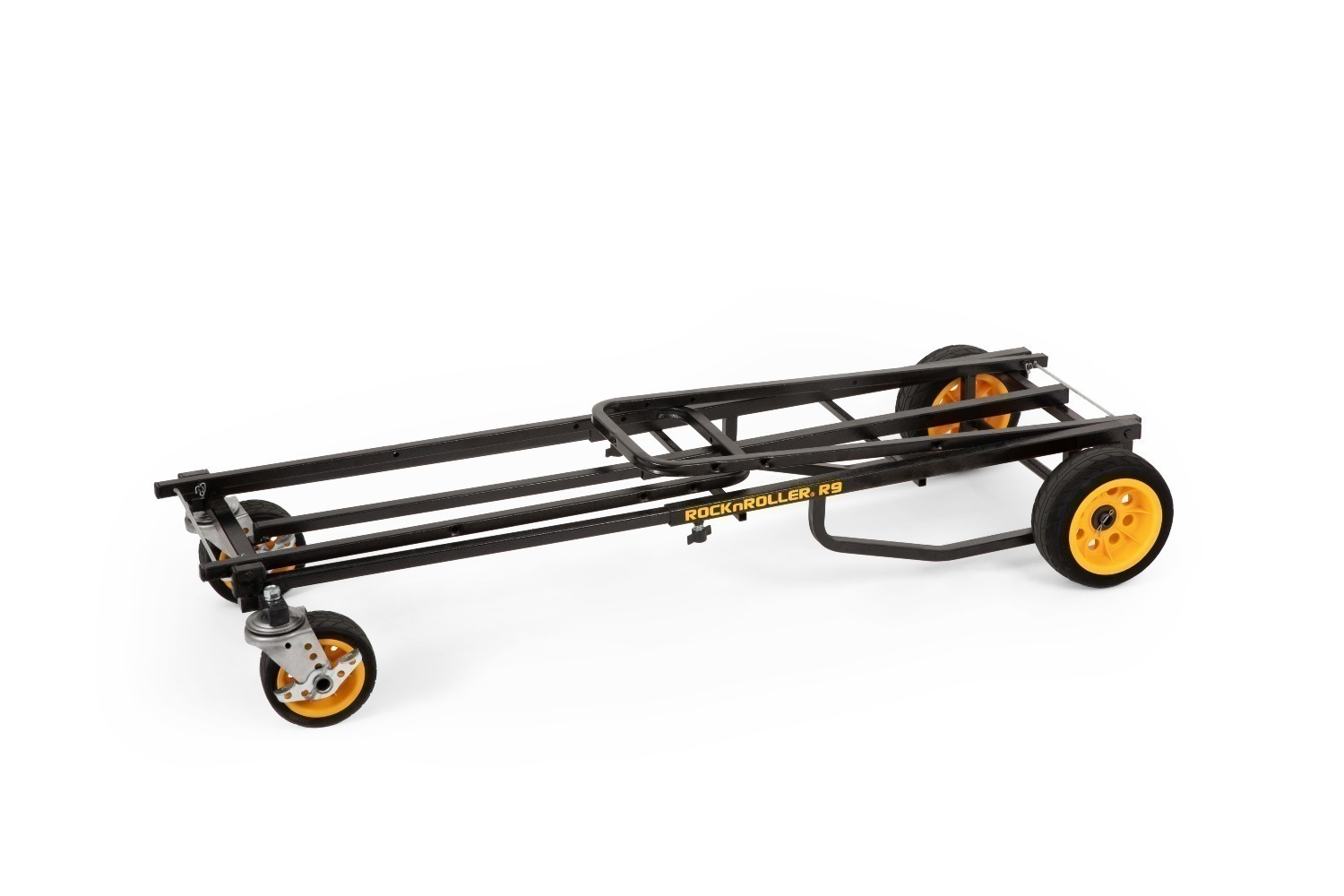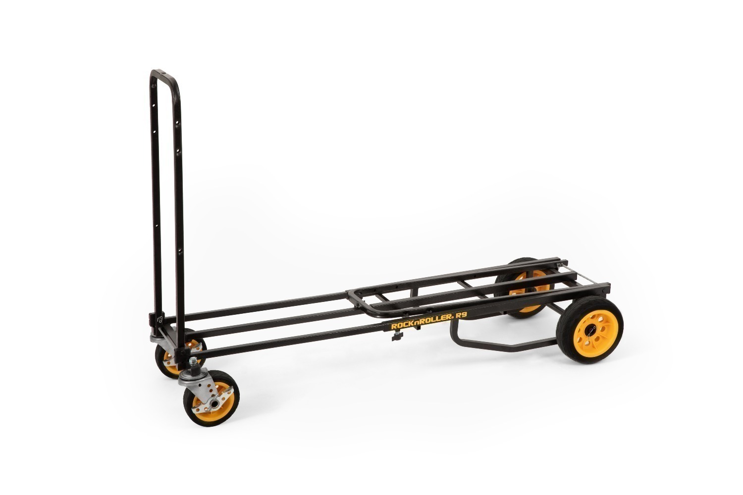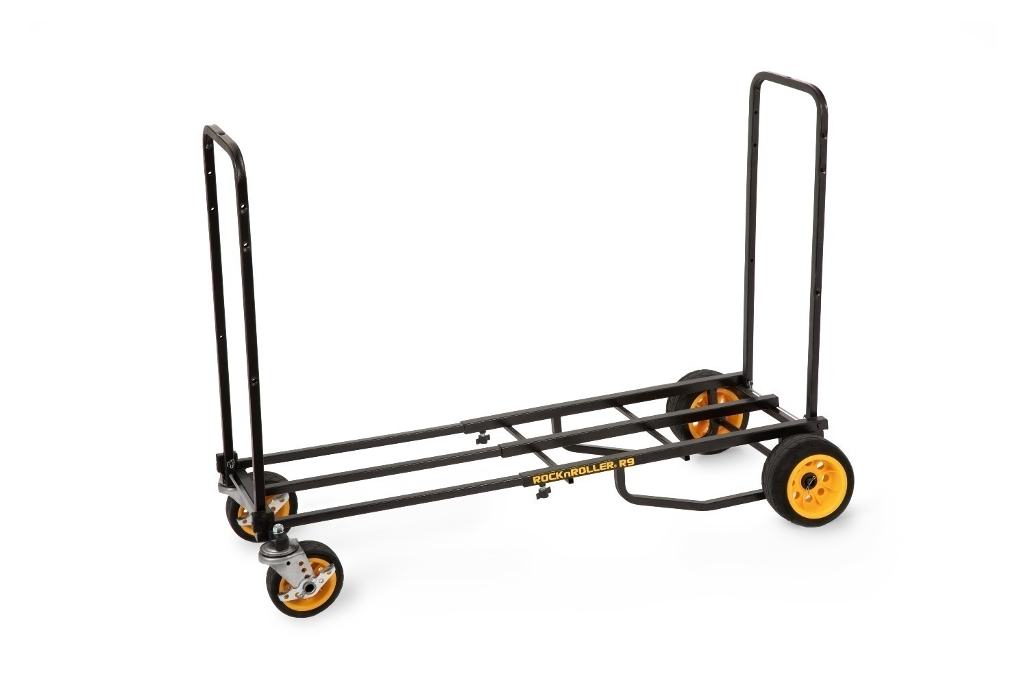 De RockNRoller® Multi-Cart® R9XLHD “Mighty Plus” 8-in-1 cart kan worden versteld van 96,5 cm tot 152,4 cm in lengte. Hij heeft acht verschillende configuraties en kan tot 272 kg of 1,16 kubieke meter aan uitrusting meenemen. Hij weegt slechts 15,4 kg. Het is perfect voor het vervoeren van audio-, video- en fotoapparatuur, benodigdheden voor het onderhoud van faciliteiten en materialen voor beurzen. Hij is ideaal voor elke situatie waarin veel draagcapaciteit en flexibiliteit nodig is.
