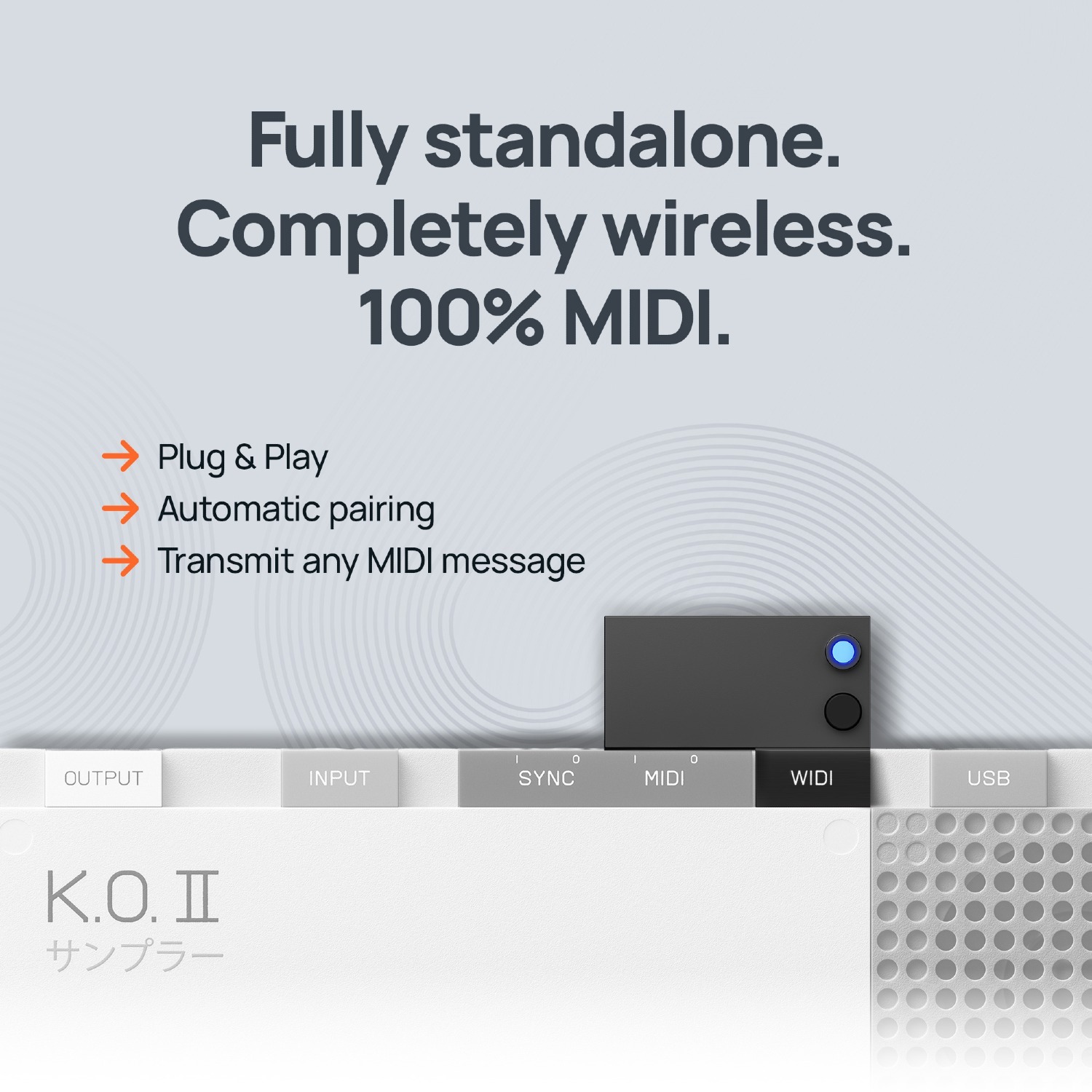 Of je nu een compacte draagbare rig bouwt, een studiotafel opruimt of een podiumklare draadloze live-opstelling voorbereidt, de WIDI K.O.II tilt je EP-serie sampler naar een krachtige draadloze MIDI-hub. Ervaar de volgende stap in Bluetooth MIDI, ontgrendel een overzichtelijke workflow en geniet van de creatieve vrijheid van een moderne, volledig draadloze productieomgeving.